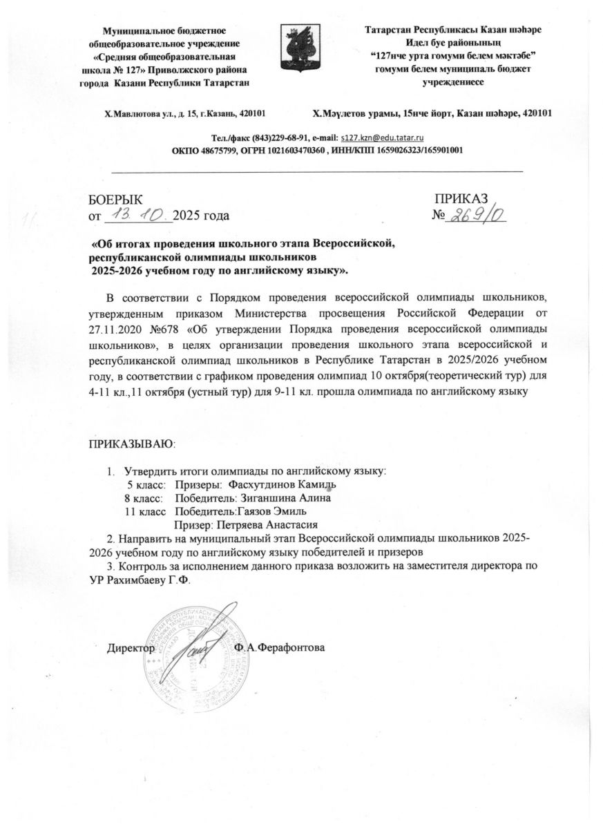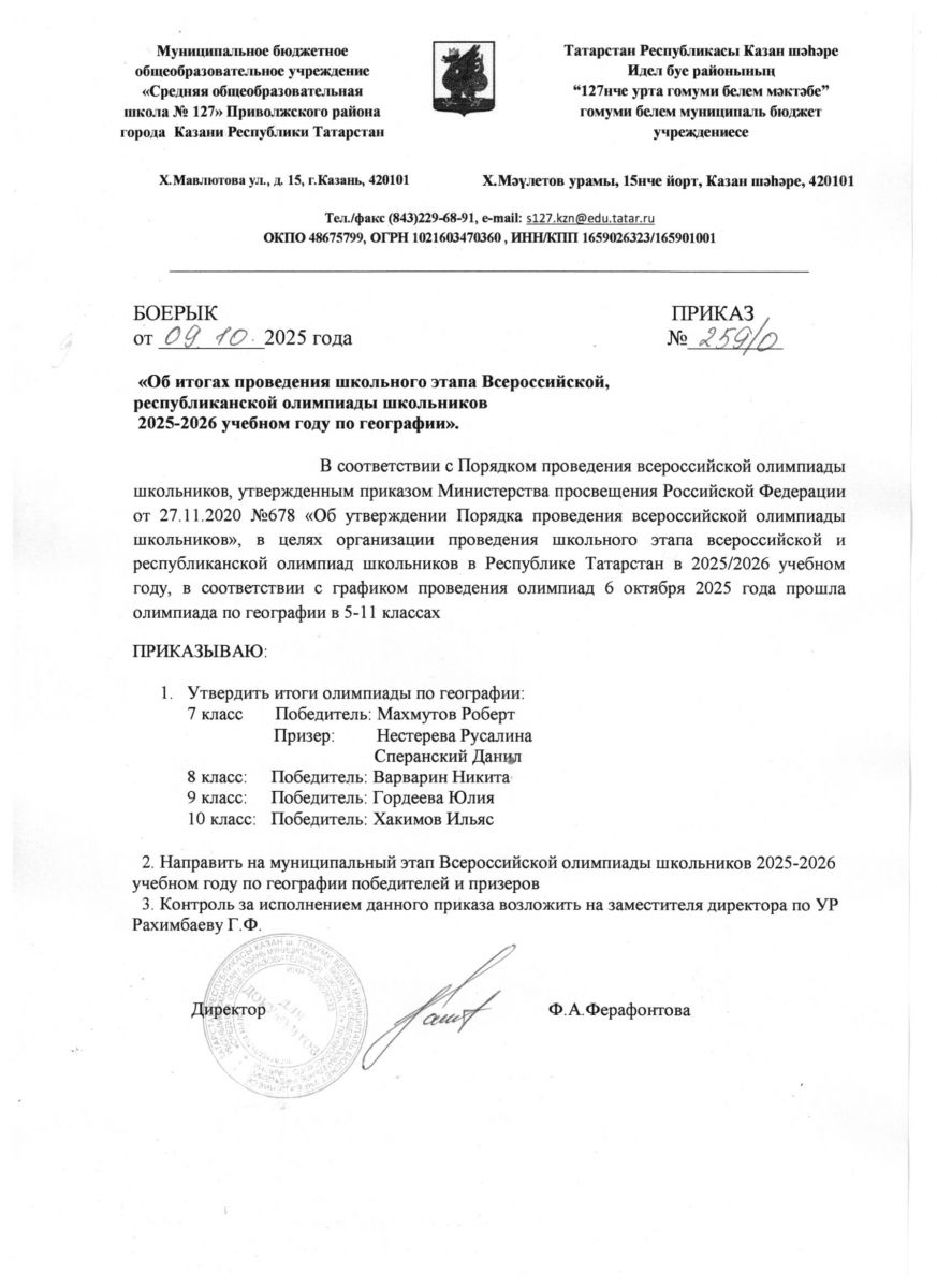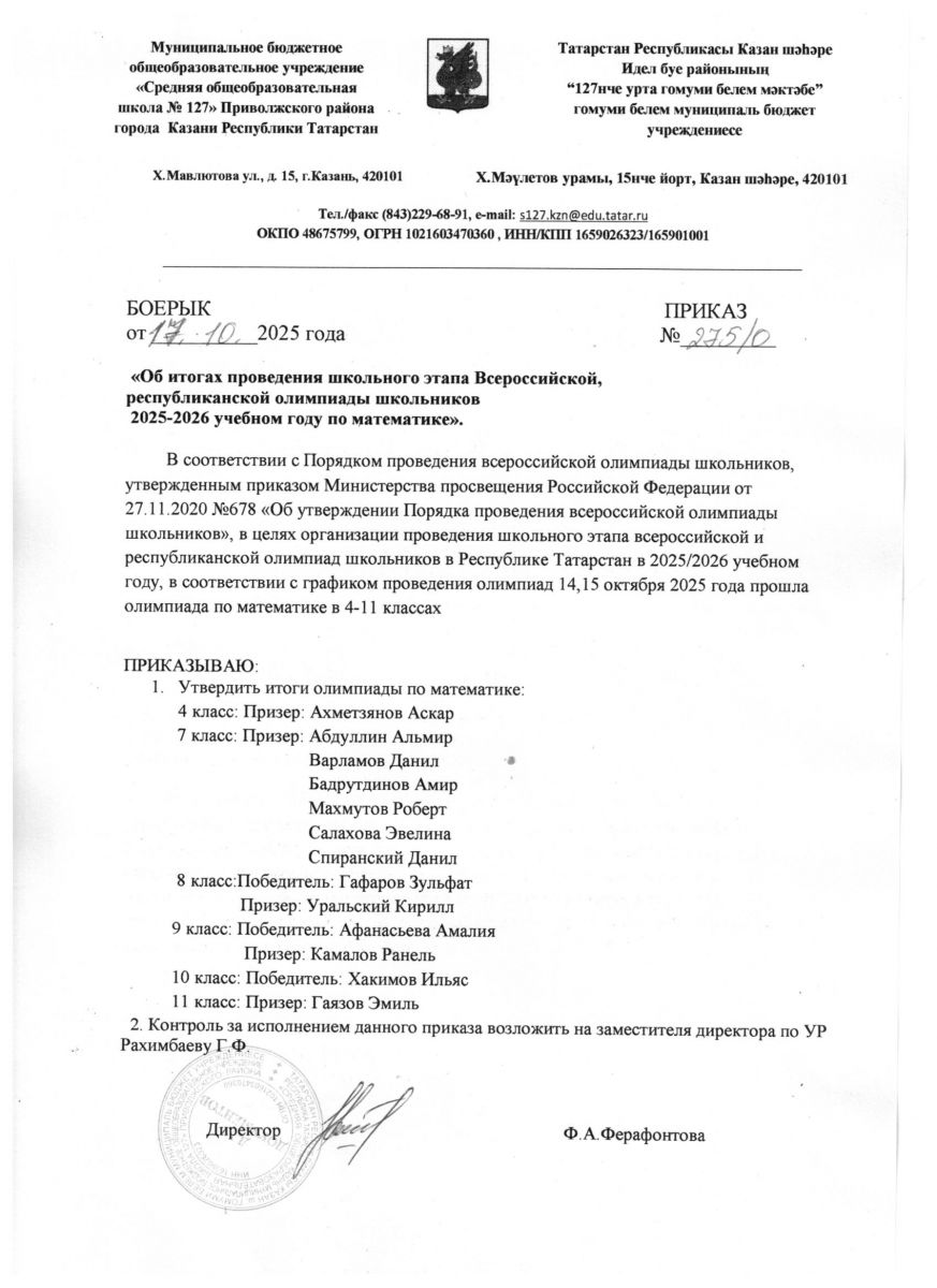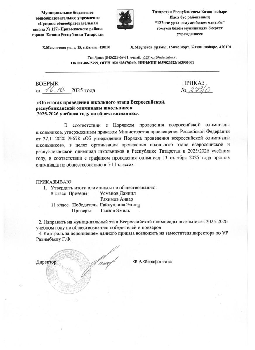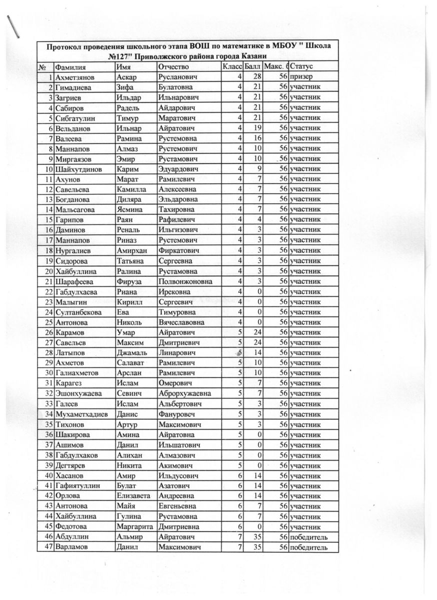 Муниципальное бюджетное общеобразовательное учреждение "Средняя общеобразовательная школа №127" Приволжского района города Казани