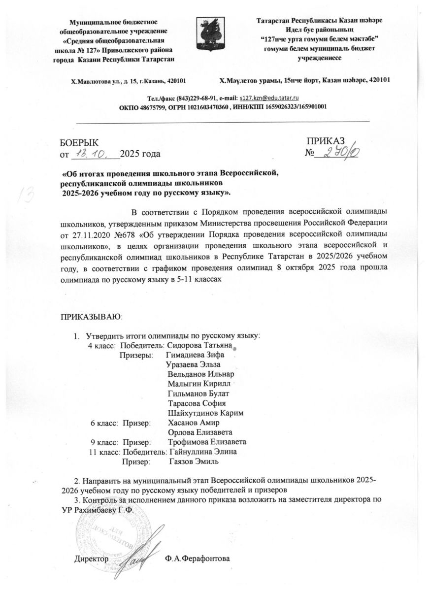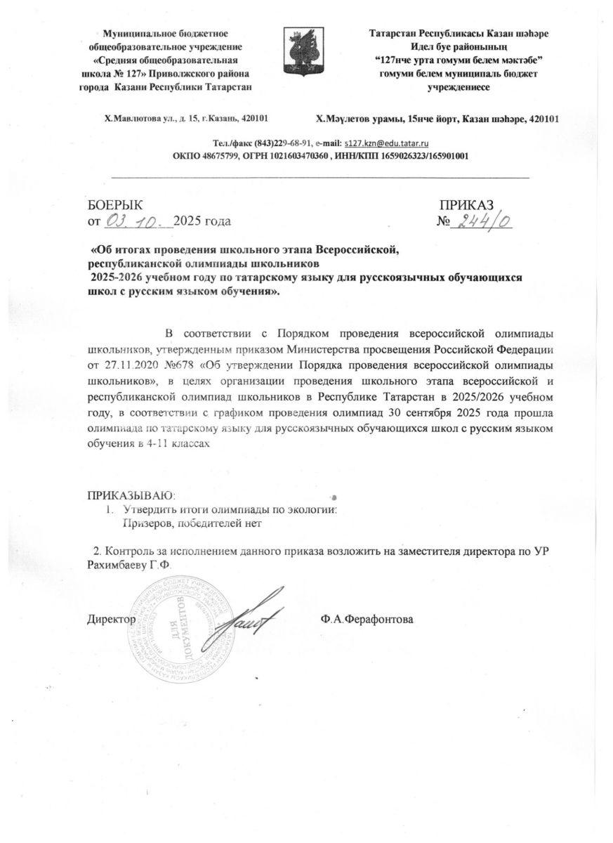 Татарский язык для русскоязычных обучающихся школ с русским языком обучения Приказ