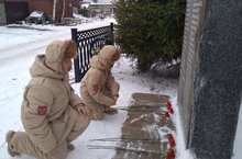 В честь памятной даты юнармейцы школы возложили цветы к памятнику погибшим в Великой Отечественной войне в посёлке «Первомайский».