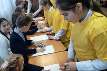 В течение дня было проведено несколько творческих мастер-классов под руководством учителя-логопеда Антоновой Ю.Ф. и при активном участии волонтеров из 4а класса. Кто-то тенцевал, кто-то рисовал солью, кто-то делал поделки. Праздник получился очень душевным.