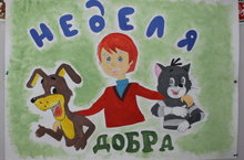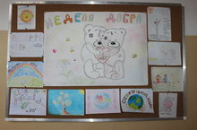 В рамках "Неделя добра" ученики подготовили выставку рисунков на тему "Добрые дела"