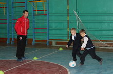 Футболисты поиграли с детьми в футбол и провели беседу о ЗОЖ.