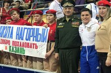 Поддержать чемпиона пришли ребята отряда Юнармии имени Героя Советского Союза В.Д. Халева МБОУ «Школа 136». -