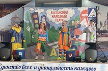 Для первоклассников гимназии выступил Казанский народный театр «Клаксон». Он представил юным зрителям познавательный спектакль по Правилам дорожного движения.