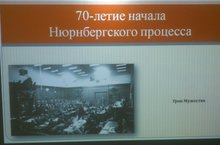 15 января был проведен урок Памяти, посвященный 70-летию Международного военного трибунала в Нюрнберге, для учащиеся 5-11 классов (учитель истории Гурьянова Л.Н.). Цель данного мероприятия рассказать учащимся об истории проведения Международного военного трибунала над главными военными преступниками Германии, познакомить подрастающее поколение с еще одной страницей истории Второй мировой войны. Показать, что главный урок Нюрнбергского процесса заключается в напоминании ныне живущим поколениям о страшной трагедии, грозившей всему миру, о подвиге наших соотечественников и других объединенных наций, о значимости решений состоявшихся судов для миллионов судеб человечества. Обвинительные приговоры на этом процессе подтвердили, что террор и агрессия, направленные против мирного населения, никогда не остаются безнаказанными.
