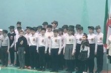 5 - 7 классы, один за другим, чеканя шаг, промаршировали по спортзалу школы. "Раз-два-три, левой, левой!" После общего построения прозвучали гимны России и Татарстана. А затем все вместе исполнили песню, ставшую гимном движения юнармейцев «Служить России».