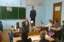 Сегодня в школе с учащимися начальных классов провел профилактическую беседу инспектор ДПС ГБДД Хамидуллин И.И.