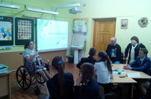 Сегодня 5 декабря в школе прошел круглый стол на тему: «Какие сложности в общении у людей с ограниченными возможностями?». Учитель искусства Сташенко Юлия Михайловна провела мероприятие с активистами детской организации СНТ и людьми с ограниченными возможностями из реабилитационного центра. На круглом столе обсуждались вопросы взаимоотношений между здоровыми людьми и людьми с различными заболеваниями; пытались найти решения увеличения круга общения; затрагивались проблемы детской инвалидности. По окончанию гости исполнили несколько песен для учащихся, а дети подарили им плакат со своими пожеланиями.