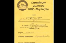 Учащиеся нашей школы 15.03.2014 года приняли XVIII научно-практическая конференция учащихся «Мир науки»в МБОУ «Средняя общеобразовательная школа №24 с углубленным изучением отдельных предметов» Приволжского района г. Казани.Ихсанова Дина ученица 9 класса педагог Хайрутдинова Ф.Ю., Андреева Екатерина ученица 9 класса педагог Тямаева М.Н., СайдуллинаАделя и Бычина Татьяна ученицы 11 класса педагог Мадышева З.М., Юсупова Рената ученица 9 класса педагог Кабирова Л.Г. были награждены сертификатами за участие.