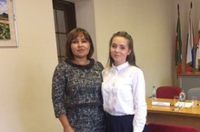 Нашу школу и Детскую организацию Союз Наследников Татарстана представила МИЛЯУША ХИСМАТУЛЛИНА (11 кл.), детский общественный помощник Уполномоченного по правам ребенка в Республике Татарстан.