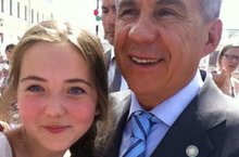 Сегодня в Кремле в День Защиты детей активистка Детской Общественной организации "Союз Наследников Татарстана" МИЛЯУША ХИСМАТУЛЛИНА С ПРЕЗИДЕНТОМ РТ Р.Н.МИННИХАНОВЫМ