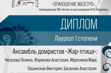 Достойная Победа Ансамбля домристов "ЖАР-ПТИЦА"под руководством Ананичевой Н.А. в конкурсе "Приношение Маэстро", посвященный 160-летию со дня рождения В.В.Андреева - русский музыкант, организатор и руководитель первого в истории России оркестра народных инструментов (1988г), композитор, балалаечник - виртуоз! Поздравляем талантливых солистов Ансамбля, прекрасного руководителя и незаменимого концертмейстера Злобина А.Ю.