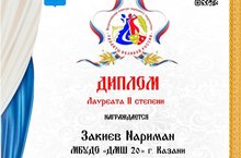 Поздравляем Заекиева Наримана с победой во Всероссийском конкурсе народного творчества "Таланты Великой России" преподаватель Гордова Н.А.