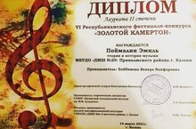 Эмиль Поймалин- Лауреат II степени в номинации "Теория и история музыки" VI Республиканского конкурса-фестиваля "Золотой Камертон", преподаватель Венера Навфаровна Байбикова!