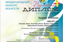 13-ый диплом ДМШ20 в копилку побед Международного конкурса искусств "Вдохновение" - Лауреаты I - вокально-инструментальный ансамбль в составе - квартета саксофонистов и вокал-соло - учащиеся преподавателей ДМШ20 Сабирзянова Ильдара Галимзяновича и Шайхеловой Риммы Миргасимовны! Гордимся! Так держать!