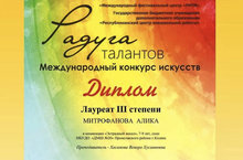 Поздравляем учащегося класса преп. Хасановой В.Х. - Митрофанова А. - Лауреат III ст.