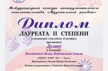 Поздравляем учащихся класса преподавателя Оськина М.Е. - Дуэт в составе: Полянский И., Поймалин Э. - Лауреат II ст.