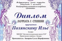 Поздравляем учащихся класса преп. Гиниятуллиной Л.М.: Гинанова А. - Лауреат I ст., Мусина Ч. - Лауреат III ст., Силантьева К. - Дипломант I ст.