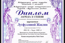 Поздравляем Лутфуллину Ж., преп.Оськин М.Е., конц. Хлесткина С.М. - Лауреат II ст. Международного конкурса инструментального искусства "Музыкальный рассвет"