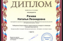 Поздравляем Рачеву Н.Л. - преподаватель ДМШ № 20 - Победитель I место Всероссийского педагогического конкурса в номинации "Сценарий мероприятия"