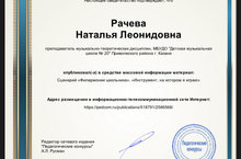 Преподаватель ДМШ № 20 Рачева Н.Л. опубликовала сценарий "Филармония школьника" , "Инструмент, на котором я играю" на Всероссийском сетевом издании "Педагогические конкурсы"