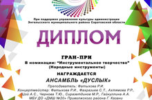 Поздравляем преподавателей ансамбля "ДУСЛЫК" - ГРАН-ПРИ в номинации: "Инструментальное творчество" (Народные инструменты)