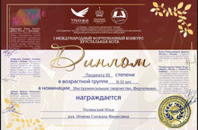 Поздравляем Полянского И. - Лауреат III ст., в номинации "Инструментальное творчество.Фортепиано", преп. Иляева С.Ф.