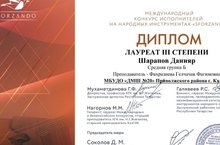 Поздравляем Шарапова Д. - Лауреат III ст. Международного конкурса исполнителей на народных инструментах "SFORZANDO", преп.Фахразиева Г.Ф.