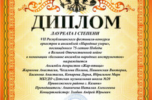 Поздравляем учащихся класса преп. Гордовой Н.А. - Закиев Н.-Лауреат I ст., Масалимова З.-Лауреат I ст.