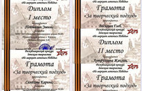Лутфуллина Ж.- Диплом II ст., Полянский И., Поймалин Э.- Диплом I место , Полянский И. - Диплом II место, Салахова К., Васильев Г.- Грамота «За творческий подход» преп. Оськин М.Е.Поймалин Э.- Диплом I место, Гаязова Р., Галеева Э., Хасанова З. - Грамота «За творческий подход». преп. Оськина З.И.Браво Зворыгину Д. - Диплом II место, преп. Мубаракова Ш.Т. -