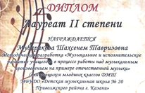 Дипломом Лауреата II ст. награждается - преп. ДМШ № 20 - Мубаракова Ш.Т.