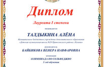Поздравляем учащуюся преп. Байбиковой В.Н. - Талдыкина А. - Лауреат ст.