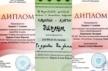 Победы в классе преподавателя Царевой Е.Ю. - Международный конкурс инструментального исполнительства "SOLO PERFORMANCE" - Перминова В. - Лауреат I ст., Международный конкурс методических разработок "MASTER CLASS" - Лауреат I ст. - Царева Е.Ю.!