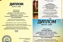 Учащиеся класса преподавателя ДМШ20 Хайнс Елены Николаевны празднуют конец учебного года яркими успехами и победами!!! Поздравляем!!! VII Международный конкурс для детей и молодежи "Все талантливы" - учащиеся класса фортепиано, преп. Хайнс Е.Н. - Алимова Д. - Победитель I место, Ионычева Е. - Победитель I место, Ионычева - Победитель I место, Зинурова Д. - Победитель I место