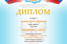 ДМШ20 в период удалённого дистанционного обучения активно участвует в онлайн-конкурсах! Учащаяся Мансура Исхаковича Хасанова - Гараева Аделя - Победитель I место Международного конкурса "Солнечный Свет"! Поздравляем!