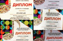 Шишикина Дарья - Лауреат I степени, Закирова Алия - Лауреат II степени, Гилязова Саида - Лауреат III степени, Закирова Саида - Дипломант I степени, преп. Шайхелова Р.М.