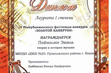 Поздравляем Поймалина Эмиля - постоянного участника многочисленных конкурсов, в этот раз Победителя V Республиканского Фестиваля-конкурса "Золотой камертон" в номинации "Теория и история музыки" преподаватель Байбикова В.Н. -