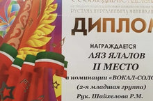 Наши Поздравления постоянному участнику и победителю - Лауреат II степени районного уровня и прохождения на городской этап "XX Созвездие Йолдызлык" - Ялалову Аязу! преподаватель Римма Миргасимовна Шайхелова