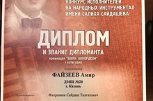 Диплом и звание Дипломанта в номинации "Баян,Аккордеон" I категории вручается Файзееву Амиру, преп. Фахразиев С.Т.