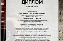 Поздравляем Плотникова Сергея Николаевича - Победитель (1 место) в номинации "Музыкальное творчество" конкурсная работа: "Guitar exclusive" Всероссийского педагогического конкурса "Высокий результат"