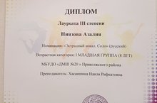 III Открытый Республиканский фестиваль-конкурс современного вокального творчества «Прорыв» - Ниязова Азалия Лауреат III степени, рук. Хасаншина Н.Р.