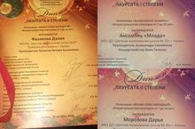 Поздравляем Хореографический коллектив "Кристалл", рук. Пигасова Н.В., Щербакова К.Е. - Лауреаты I степени в номинации "Народный стилизованый танец" 13-15 лет; Лауреаты II степени в номинации "Народный стилизованный танец" 7-9 лет