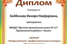 Поздравляем Байбикову Венеру Навфаровну - Лауреата I Всероссийского профессионального конкурса "Фундамент Успеха"