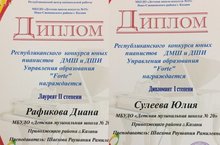 Поздравляем Лауреатов Республиканского конкурса "Forte" - Рафикова Диана - Лауреат II степени;Сулеева Юлия - Дипломант I степени - рук. Шаехова Р.Р.