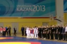 Исполнение гимнов РФ и РТ в спортивном комплексе "Бустан" 16.03.2018