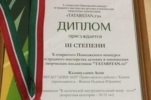 Х Открытый Поволжский конкурс эстрадного мастерства детских и юношеских творческих коллективов «Tatarstan.ru» - Калимуллина Асия -Дипломант III степени,рук.Яшина Н.Ю.