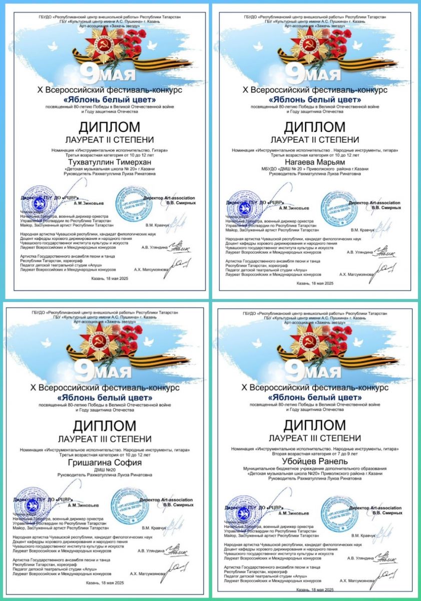 Многочисленные победители Всероссийского конкурса - учащиеся класса "Гитара" преподавателя Луизы Ринатовны Рахматуллиной