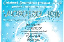 Лауреат Всероссийского конкурса Морозко-2016 14.03.2016