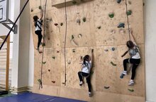 Обучающиеся в первый раз пытались преодолеть скальную стену при помощи страховочной системы.