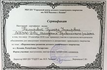 19 сентября в Городском центре детского технического творчества им В.П.Чкалова состоялось городское методобъединение педагогов технической и декоративно-прикладной направленности по теме: "Перспективное развитие детского технического творчества в г. Казани, Республике Татарстан", в котором приняла участие наш педагог Темирова Г.У. Обсуждались перспективы развития детского технического творчества в г.Казани и пути интеграции технического и декоративно-прикладного творчества.